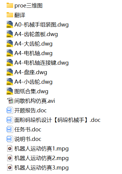 面粉码垛机设计【说明书、CAD图纸、三维proe、开题报告、任务书、翻译、仿真】