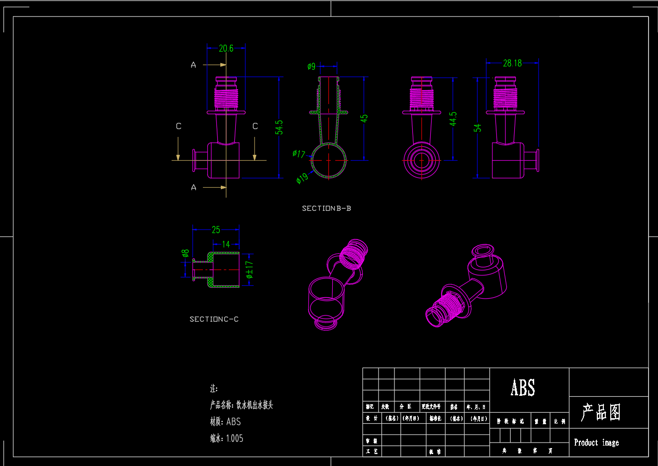 饮水机机嘴注塑模具设计[三维ug、cad图纸、毕业论文]