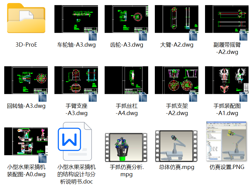 小型水果采摘机的结构设计与分析【说明书、CAD图纸、三维proe、动画仿真】