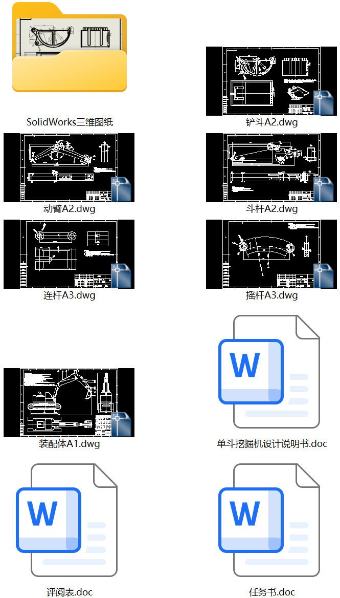 单斗挖掘机设计【任务书+说明书+solidworks三维+6张cad图纸+评阅表】 液压挖掘机工作装置设计
