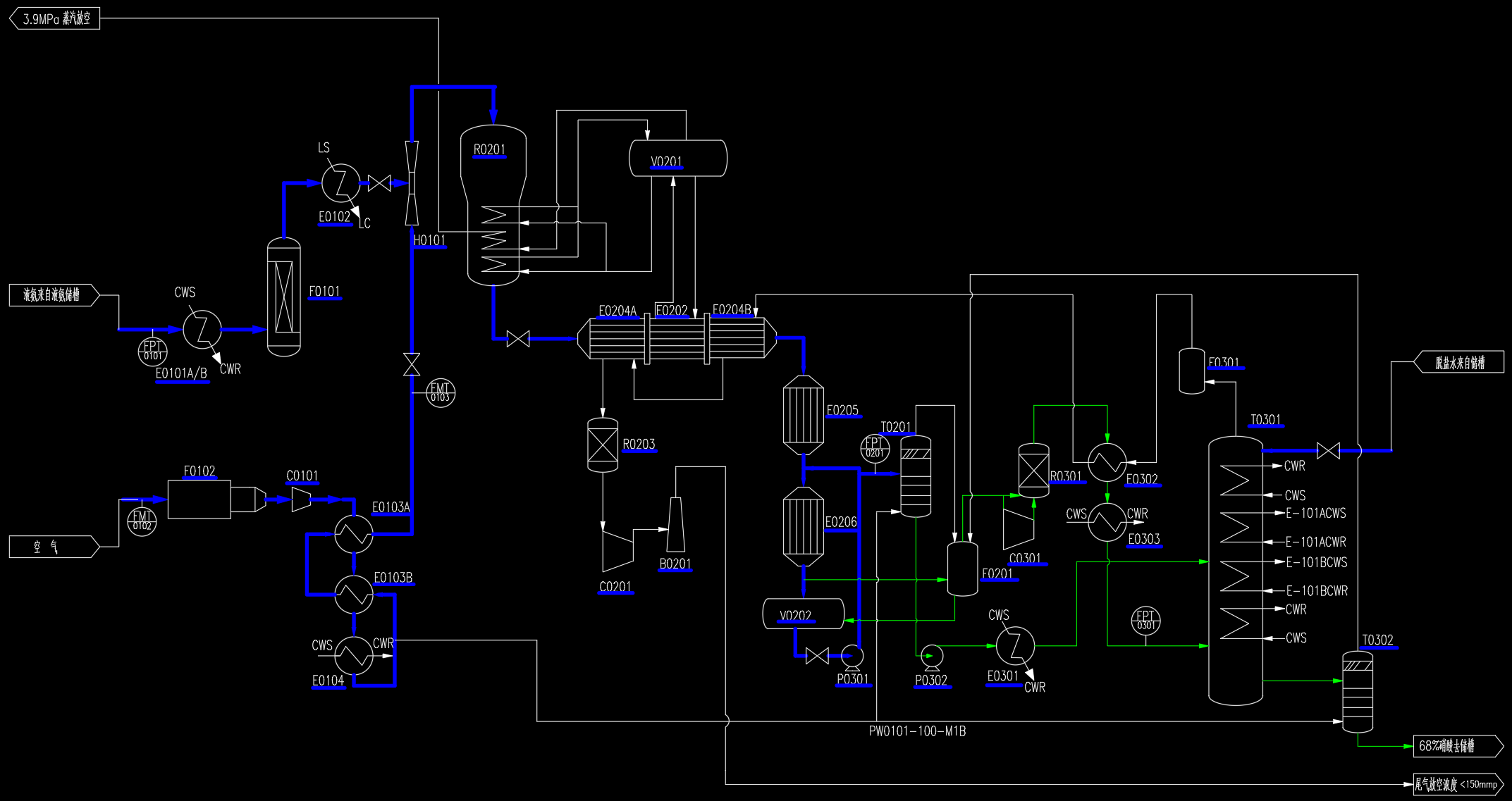 双加压制稀硝酸工艺流程图