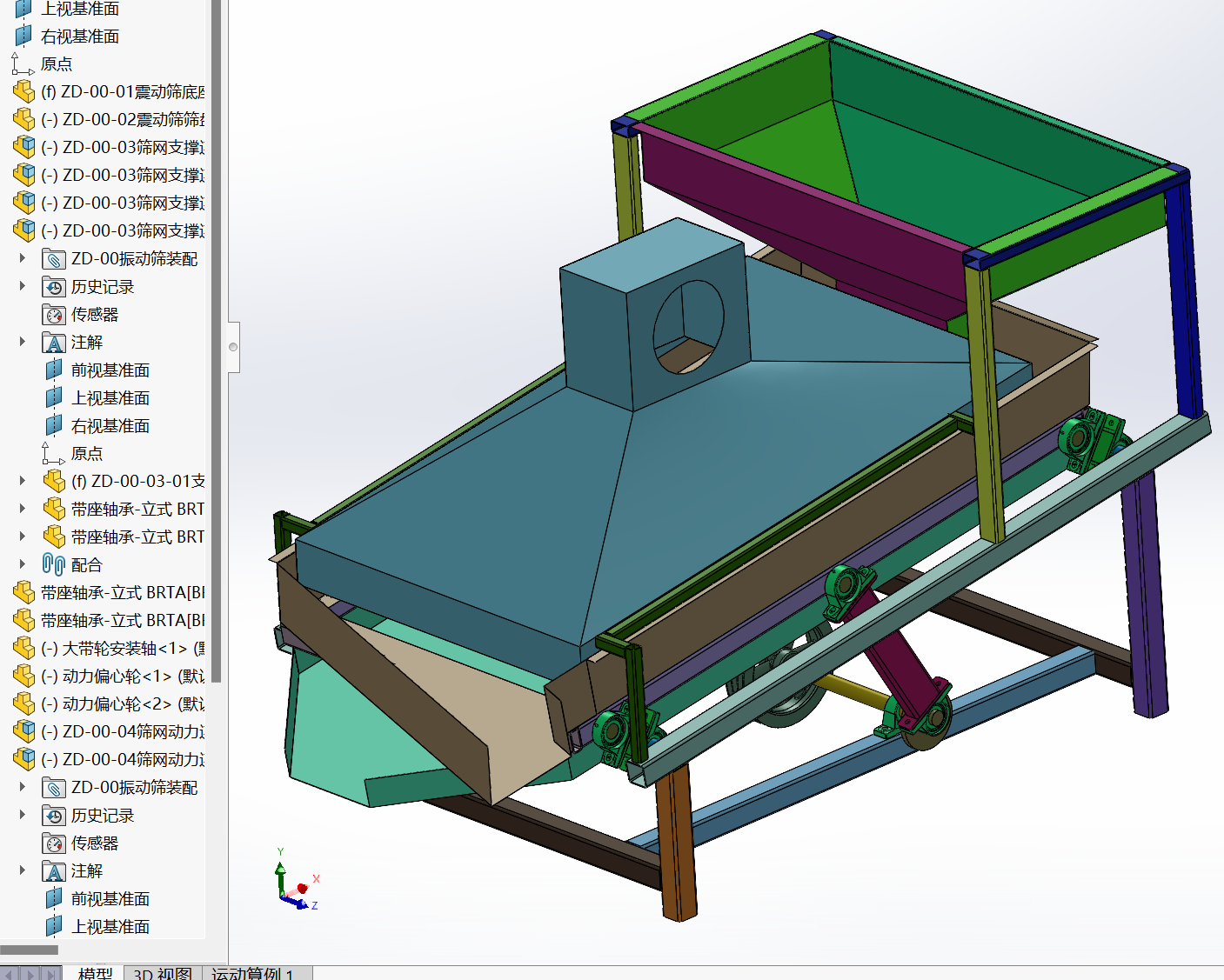 粮食振动筛的三维模型,直观展示了筛体、振动电机等核心部件的结构与配合关系。通过三维动态展示,能清晰观察物料在筛面上的运动轨迹与筛分过程。这种三维表达方式,有助于深入理解设备的工作原理,为后续的结构优化与性能分析提供了直观的参考。相关学习资料能帮助快速掌握其设计要点,对提升设计效率有积极作用。