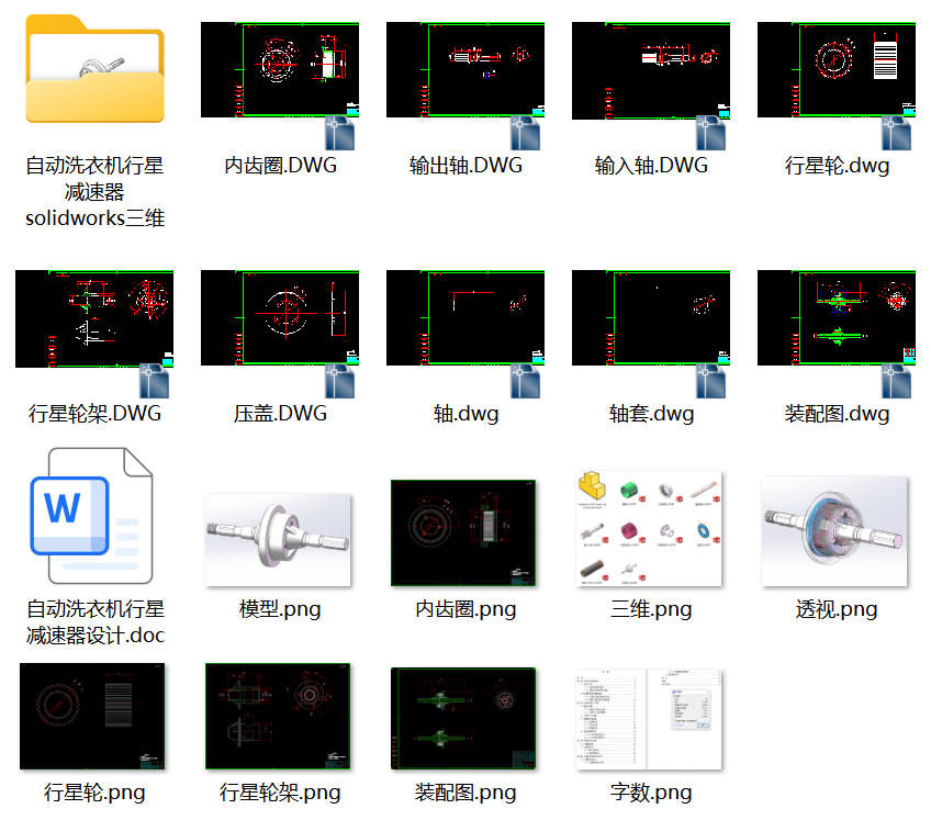 自动洗衣机行星齿轮减速器的设计【论文+9张CAD图纸+SW三维图】