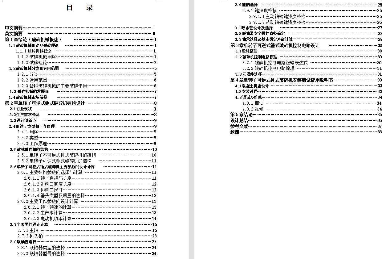 单转子可逆式锤式破碎机设计(说明书+CAD图纸)