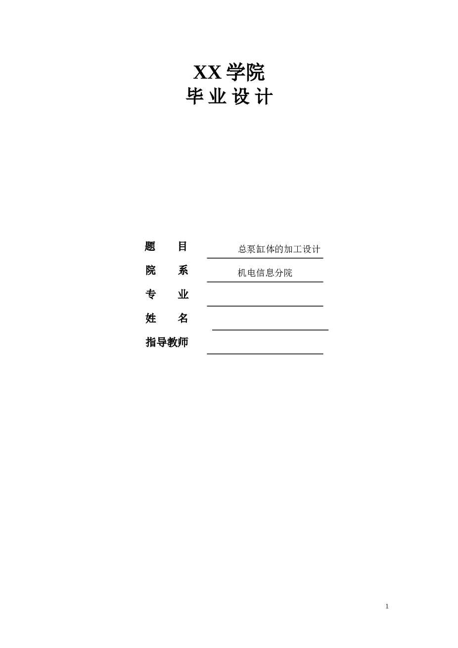总泵缸体加工(论文+DWG图纸+proe三维图+工艺卡片)