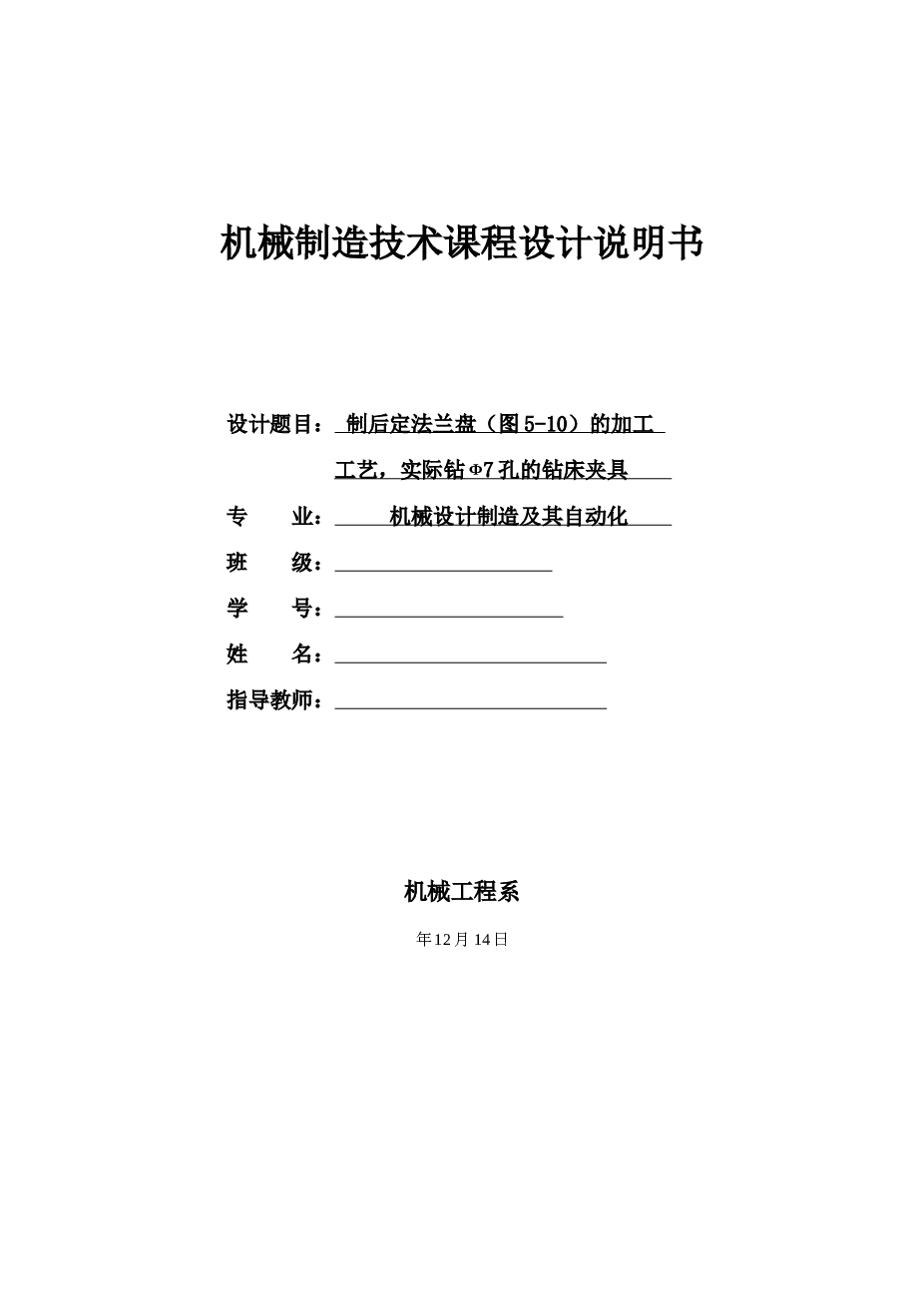 制定后法兰盘(图5-10)的加工工艺,设计钻Φ7孔的钻床夹具